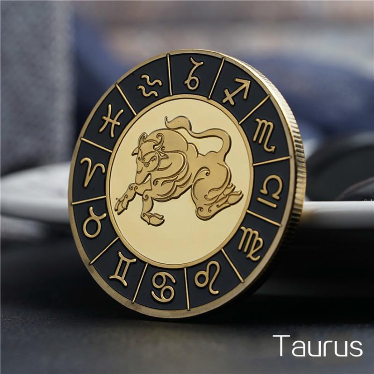 Сувенірна монета таро сузір“я Зодіака Телец, інкрустований