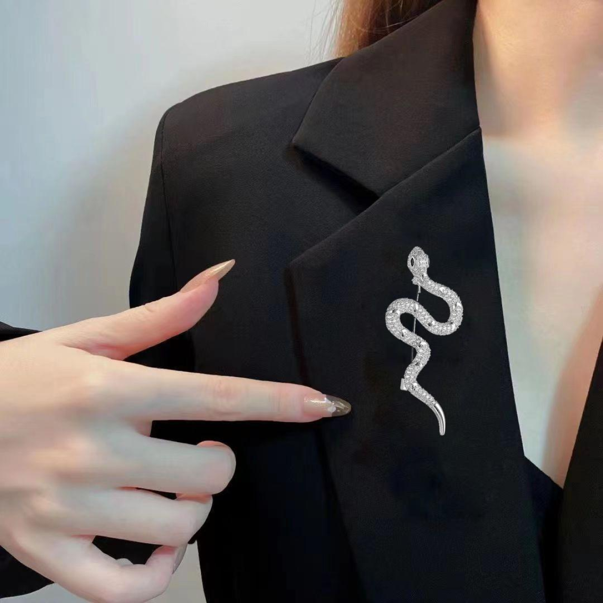 Брошка у формі білої змії, шпилька Символ 2025 г з імітацією кристала та стразами.