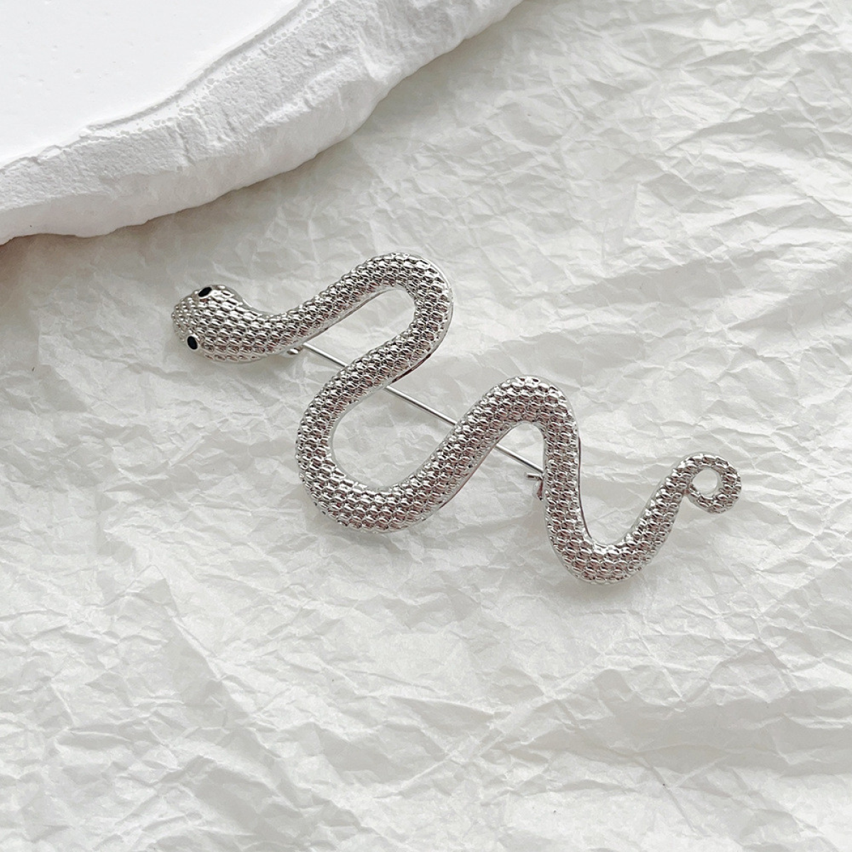 Брошка у формі сріблястої змійки, шпилька Символ 2025 г з імітацією лусочки.