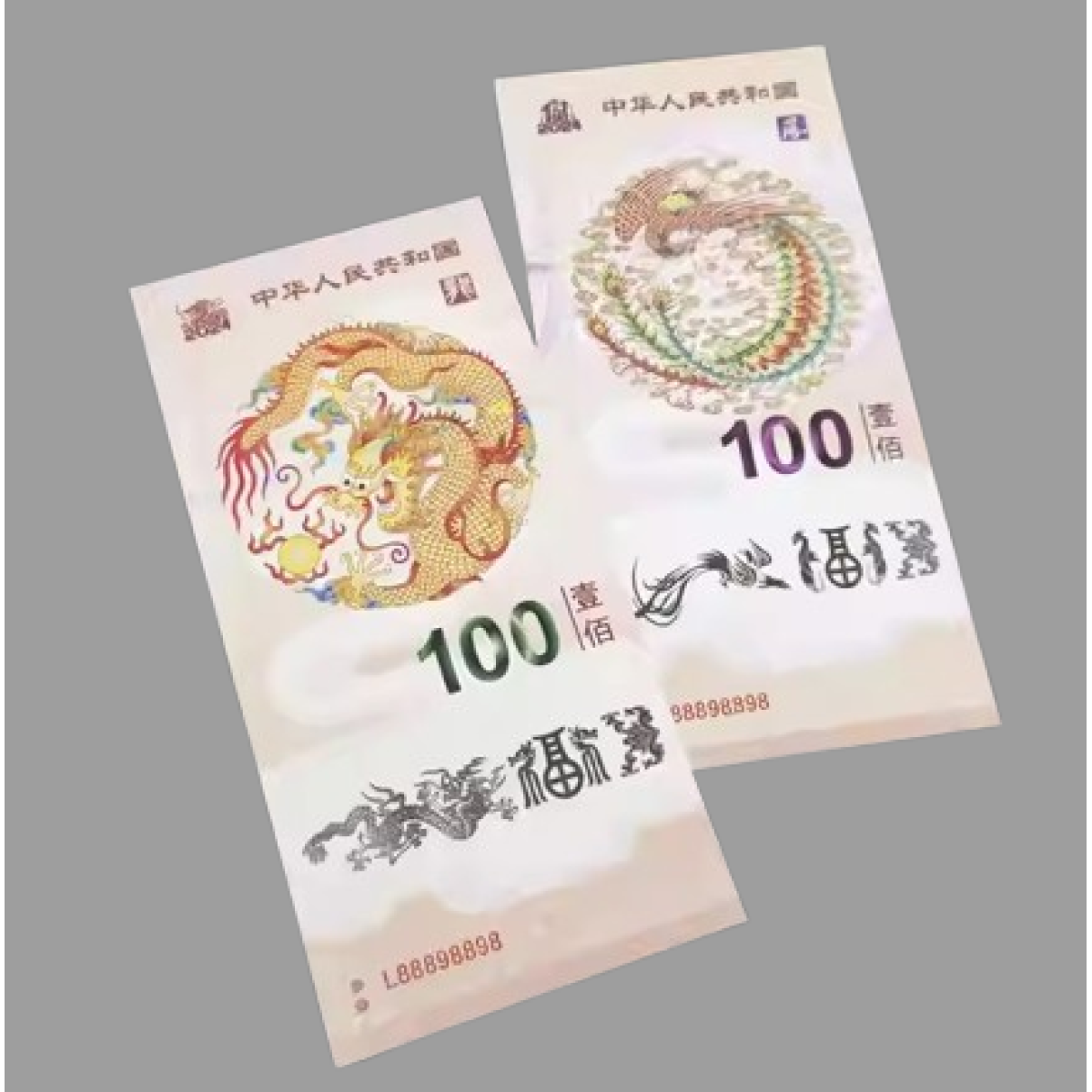 Дві Банкноти Пам“ятні Флуоресцентні 2024г. Діти Дракон і Фенікс. номінал 100. UNC, колекційна.