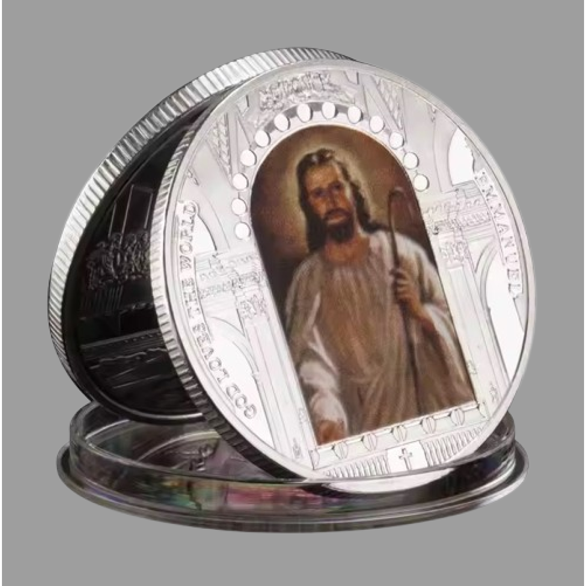 Сувенір позолочена монета медаль кольорова Синя вечеря (в капсулі)