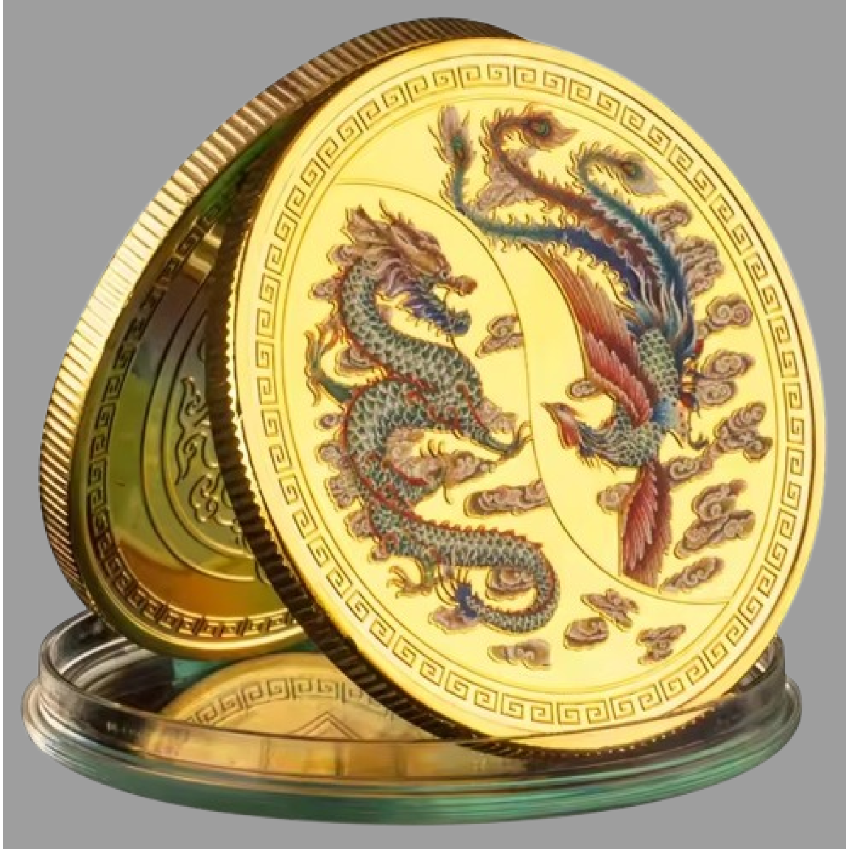 Сувенірна кольорова монета “ Дракон і фенікс“ пам“ятні монети. голд