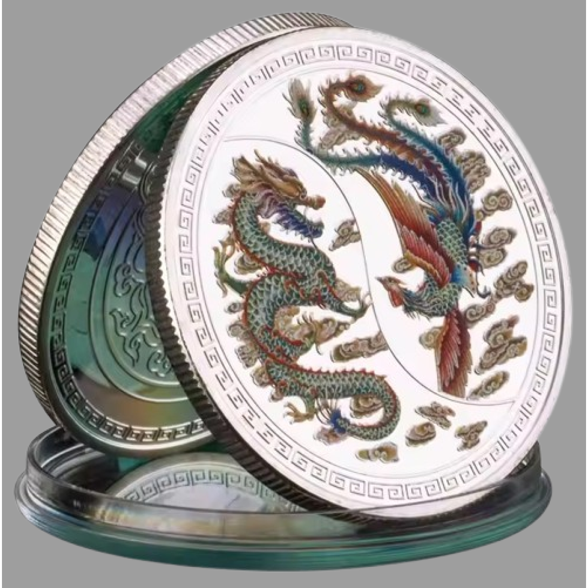 Сувенірна кольорова монета “ Дракон і фенікс“ пам“ятні монети. сильвер