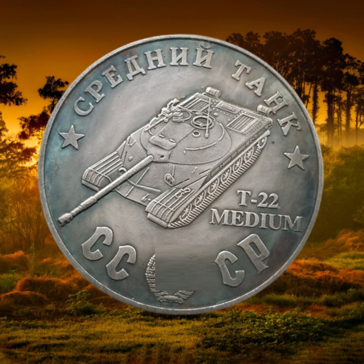 Сувенір монета Середній танк Т-22. Серія “Танки СРСР“. Монетоподібний жетон