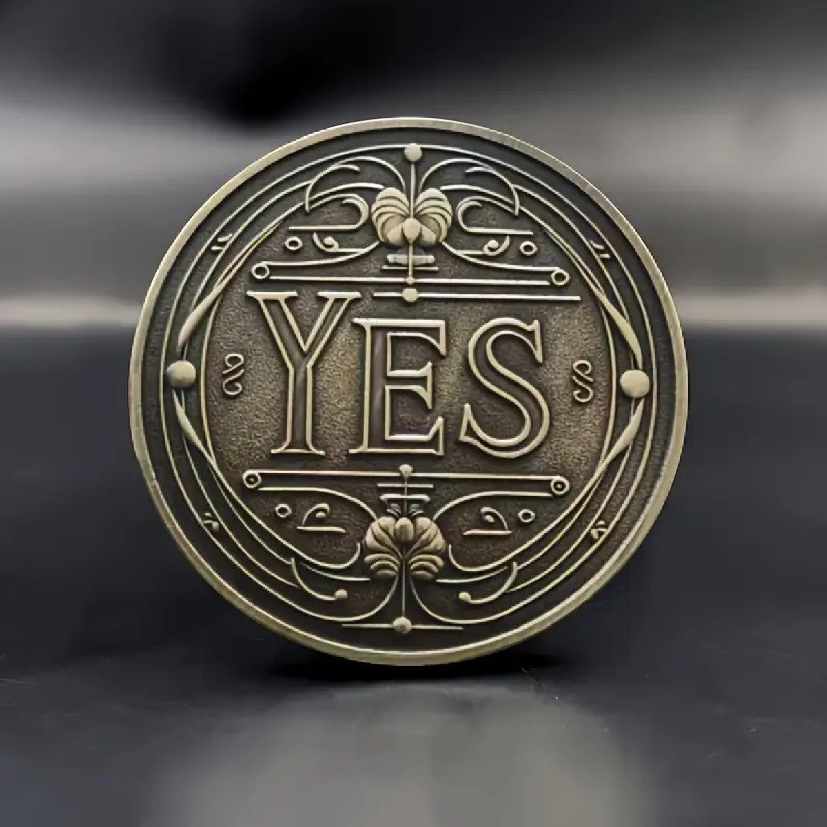 Металева монетка зі сторонами «так/ні» миттєво розв“яже будь-які суперечки й дасть однозначну відповідь на питання, що цікавить. Такий сувенір універсальний і дасть змогу проявити увагу до подруге 8 Марта, к другу на Новий рік або 23 лютого вічно сумнівається і хватку парню. Гарний дизайн монети містить об“ємний квітковий візерунок і опуклі написи сторін.