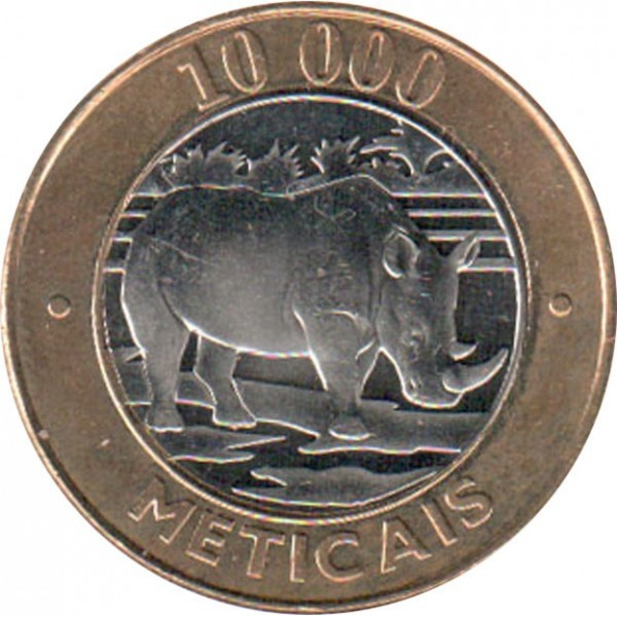 Монета 10 000 метікалів 2003г Носоріг (Оберотні монети)