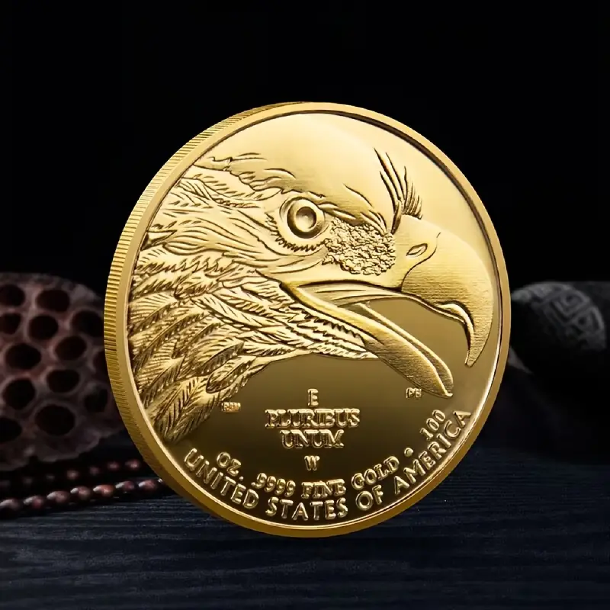 На реверсі великим планом зображений орел з інтенсивним поглядом. Написи на реверсі містять «E PLURIBUS UNUM», «1 OZ. .9999 FINE GOLD, «$100» і «UNITED STATES OF AMERICA».