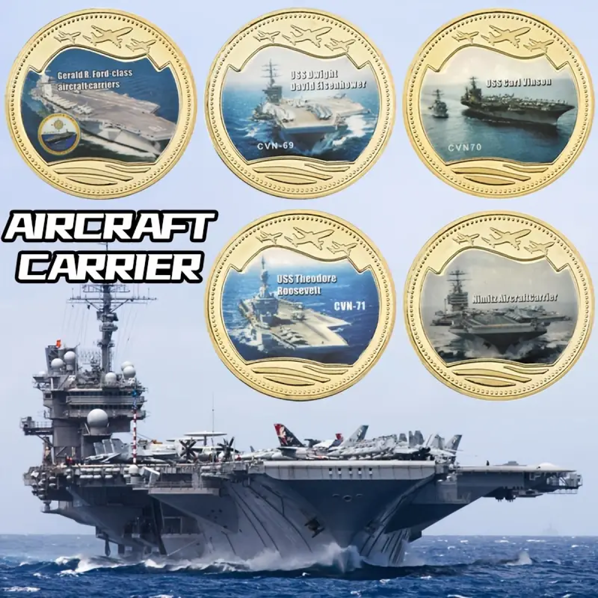 Сувенірна Пам“ятна монета набір 5 шт. золотих монет «Авіаносець ВМС США» сильвер