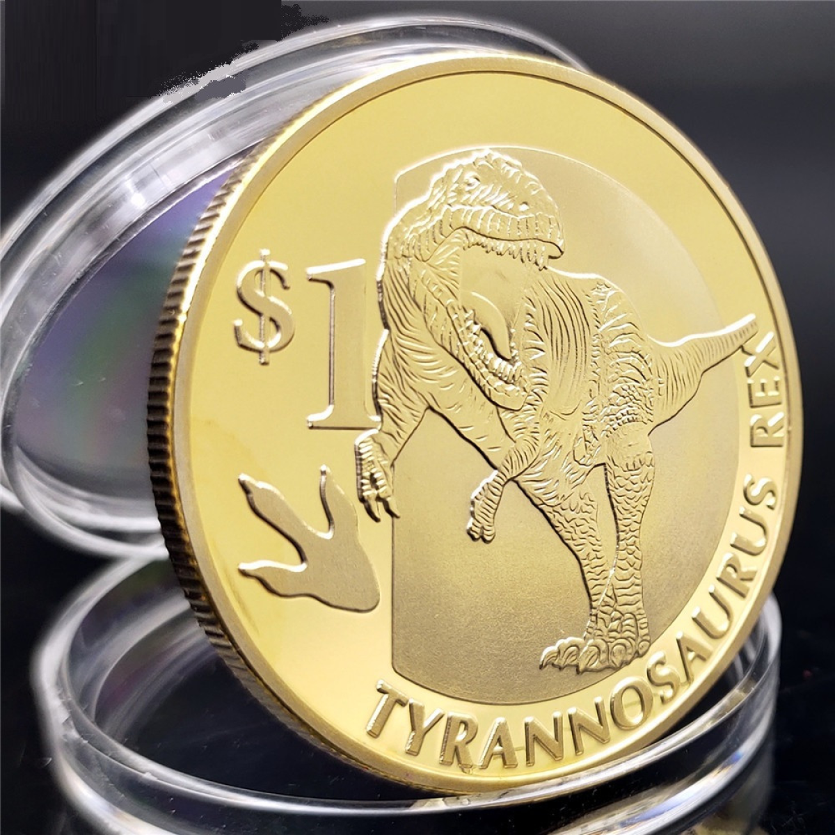 Сувенір монета 1 долар 2015 г, “Тиранозавр Рекс“ голд. Сьєра Леоне. Динозаври