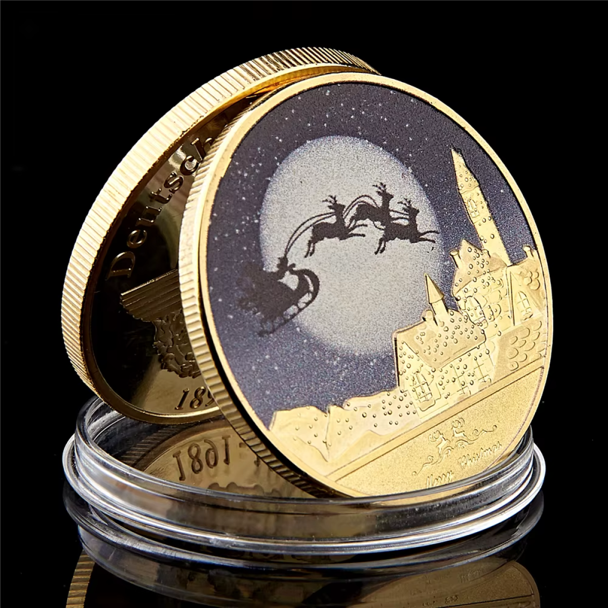 Монета сувенір “Щасливого Різдва!“ з Оленями. голд подарунок на Новий рік і Різдво