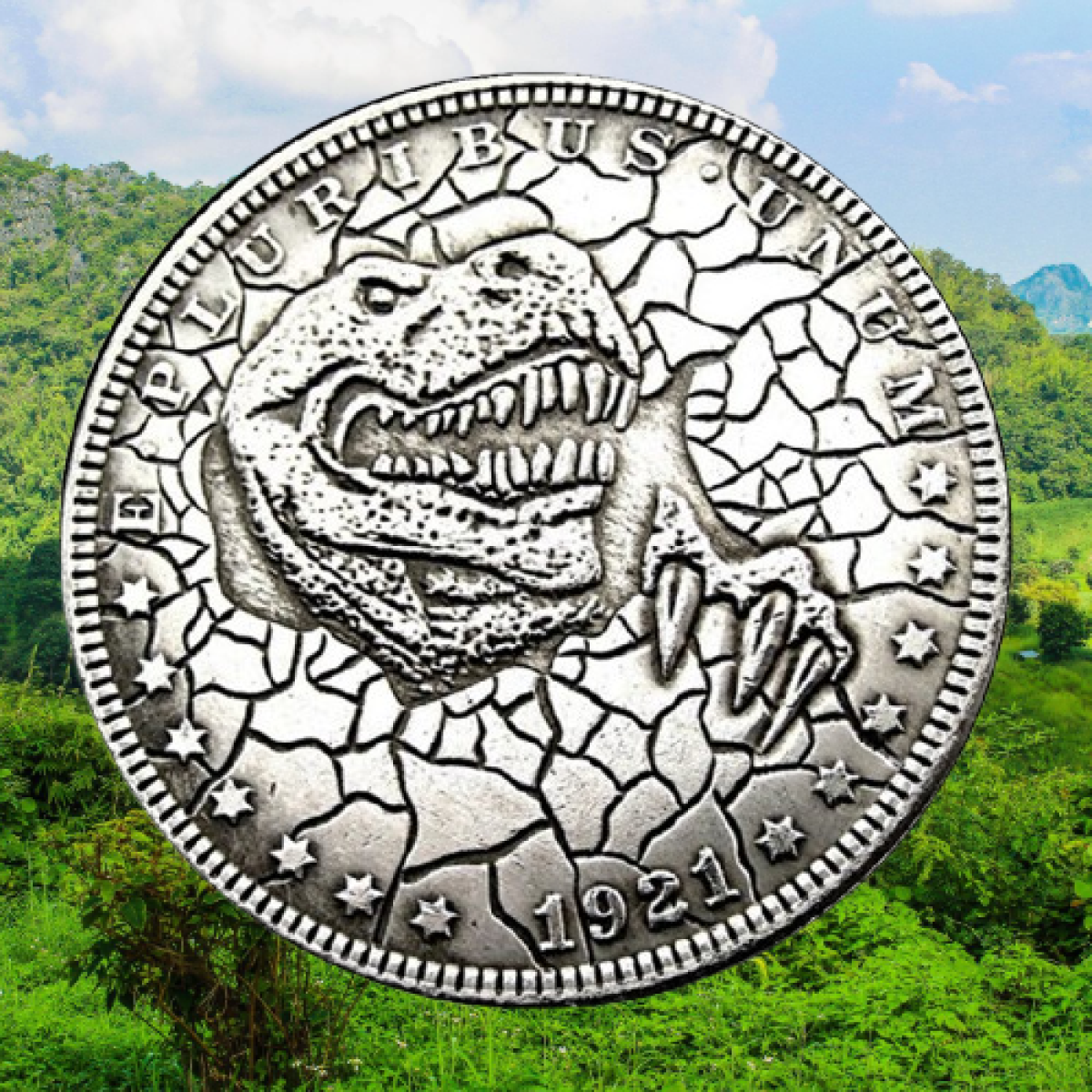 Сувенір монета долар США Банк 1921г “Тиранозавр“. Hobo Coin American Morgan