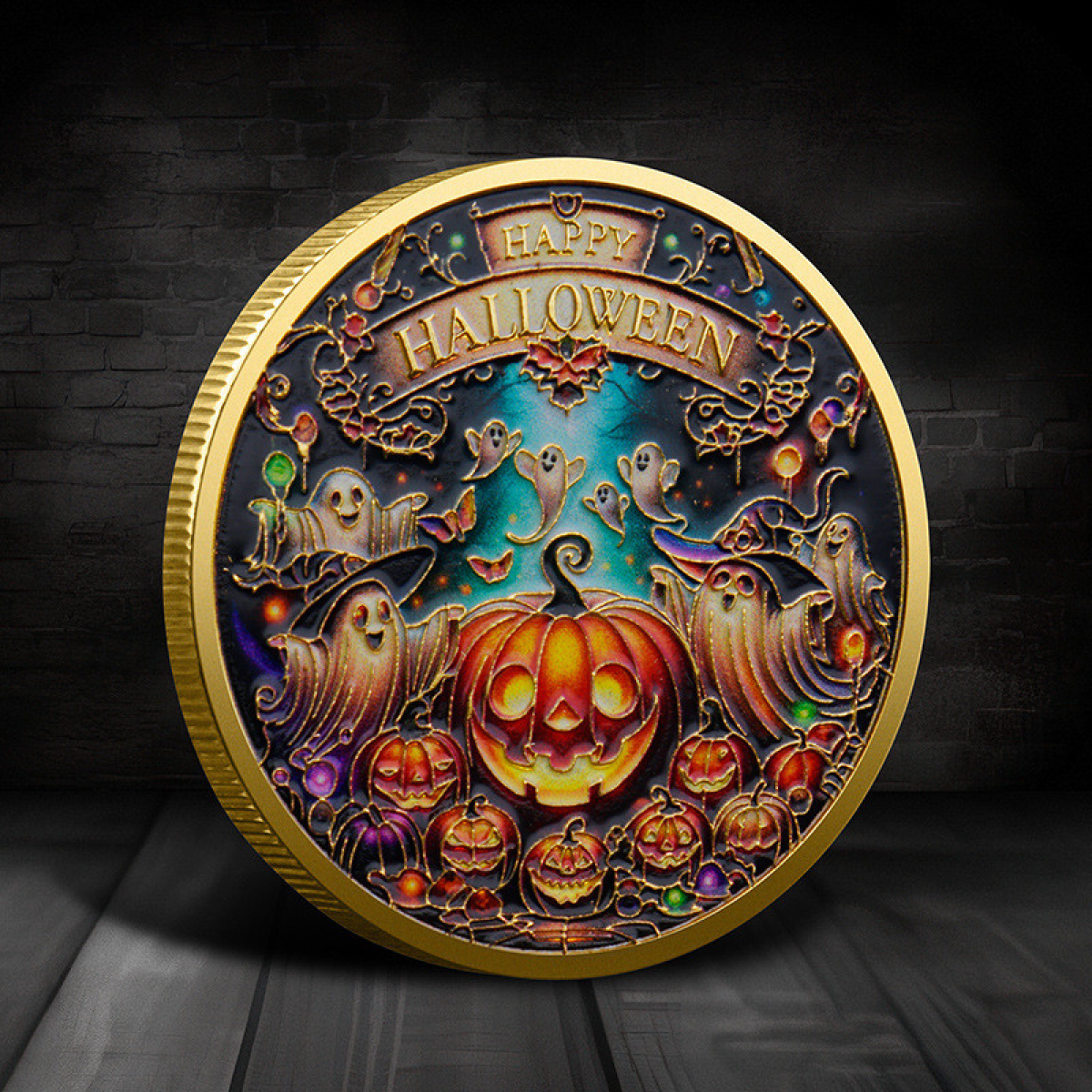 Монета сувенір із гарбузом “Щасливого Хелловіна“ голд. талісманом подарунок на Гелловін