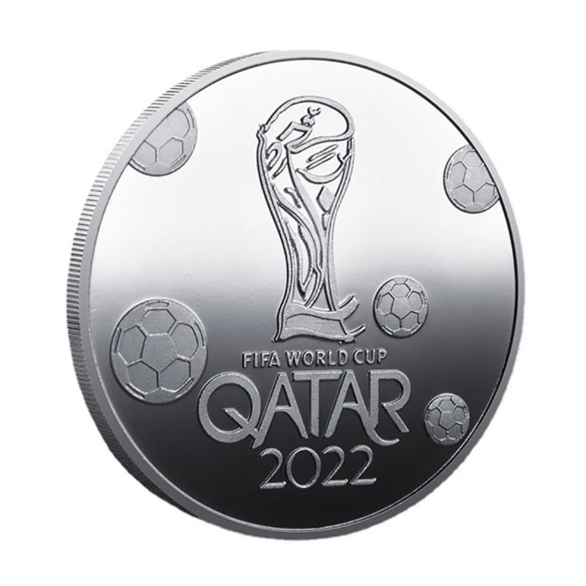 Сувенірна Пам“ятна монета чемпіонату світу з футболу в Катарі 2022 року. сильвер
