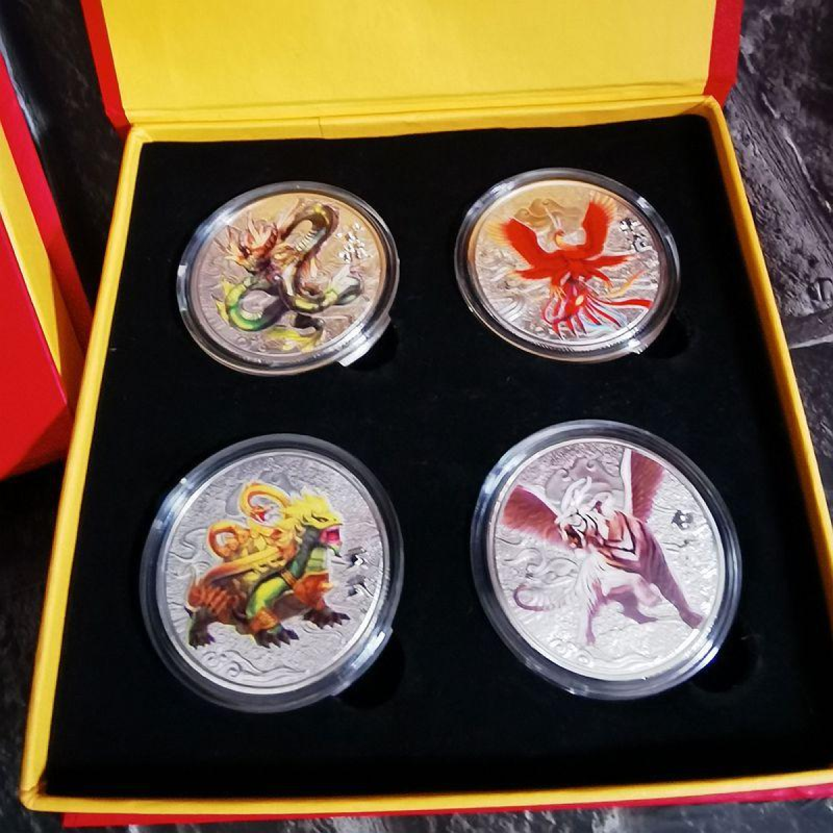 Сувенір набір монет, 4 присвячених тварин Китаю. 40*1.5мм Сільвер (у коробці)