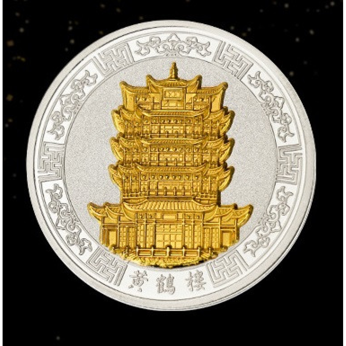 Сувенірна двокольорова 3D монета «Башня жовтого журавля» (40*2 мм)