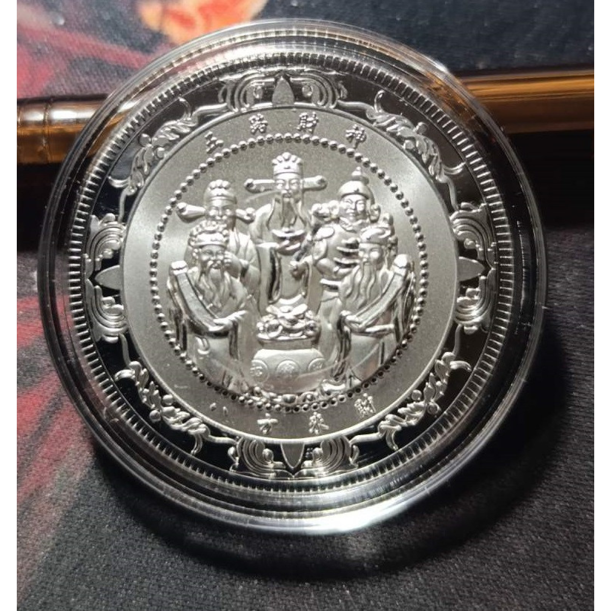 Пам“ятна Тайваньська рельєфна монета «П“ять Богів багатства» силвер. талісман удачі та Везіння 40*2 мм