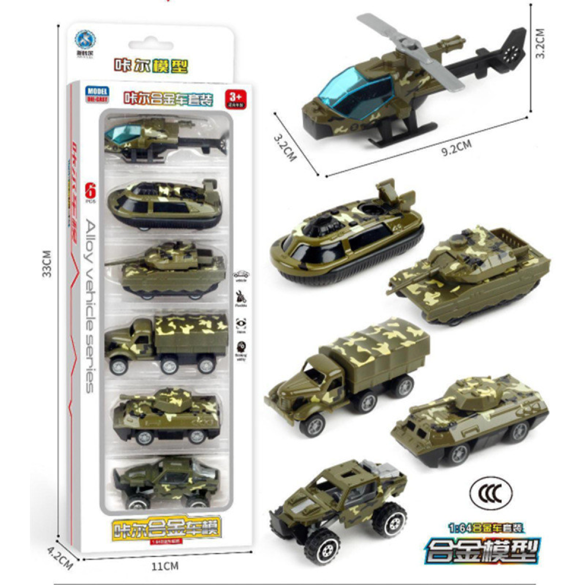 Набір мінімашинок у стилі мілітарі (Упаковка 6 шт. 1/60)