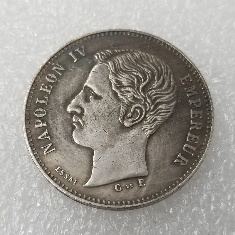 Пробна чеканка з бюстом принца Наполеона Євгенія Луї Бонапарта, сина імператора Наполеона III, на аверсі та титулом “НАПОЛЕОН IV ІМПЕРАТОР“.