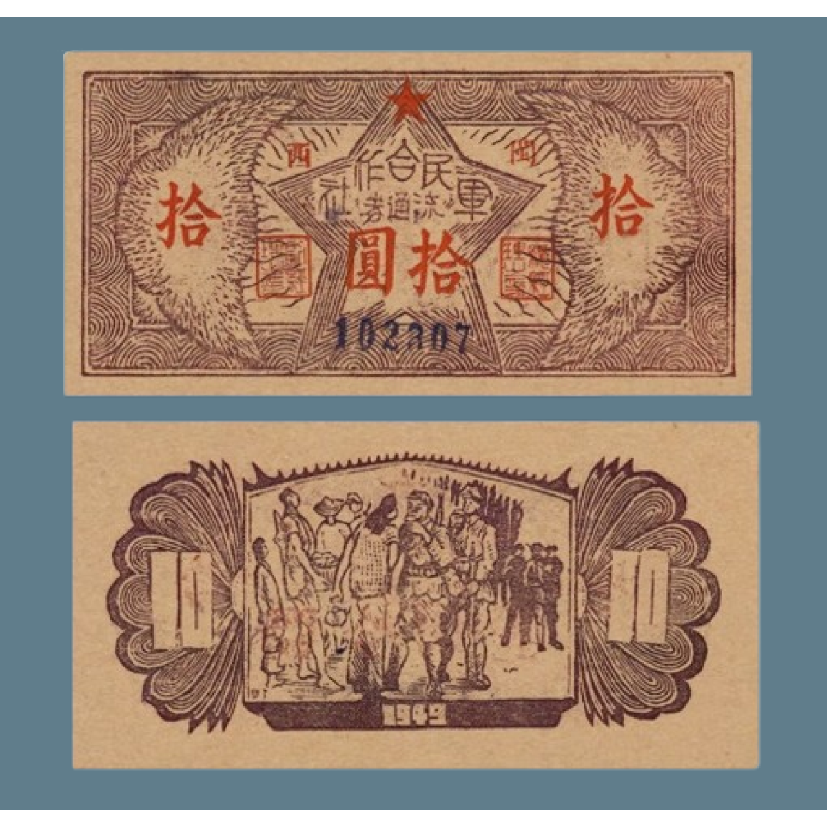 Сувенір банкнота Військово-градинський ваучер 10 юань Китайської Республіки 1949 року.