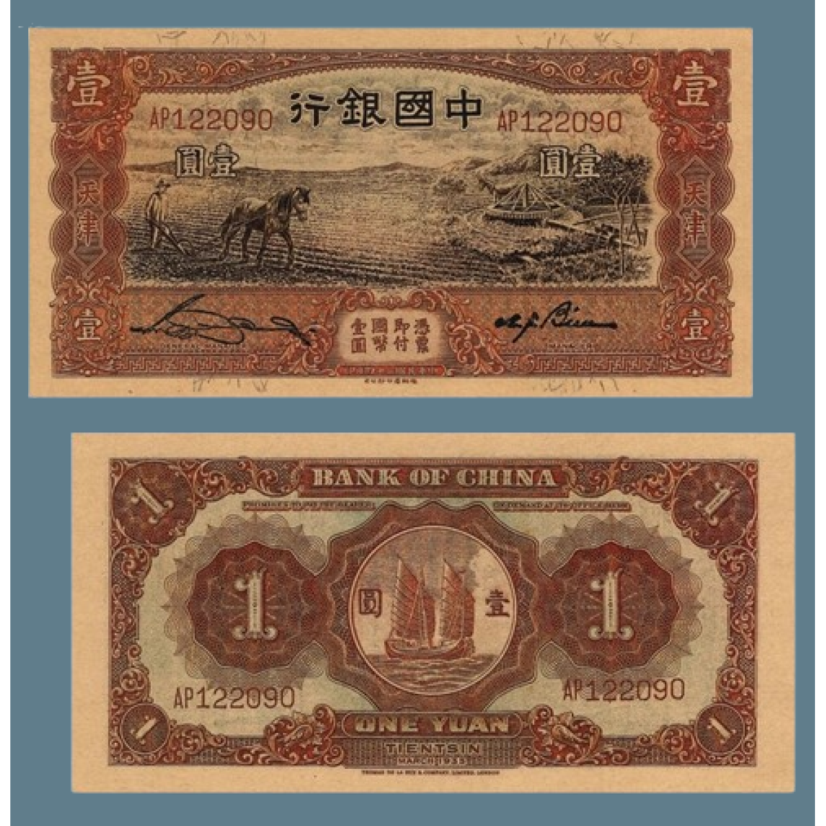 Сувенір банкнота 165 банка Китаю 1935 р., для провінції Тяньцзінь