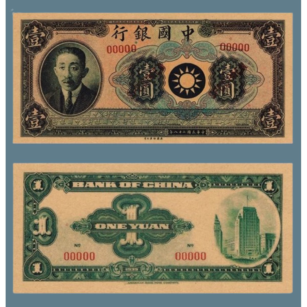 Сувенір банкнота 1 юань банку Китаю 1939 г, Ляо Чжунка,