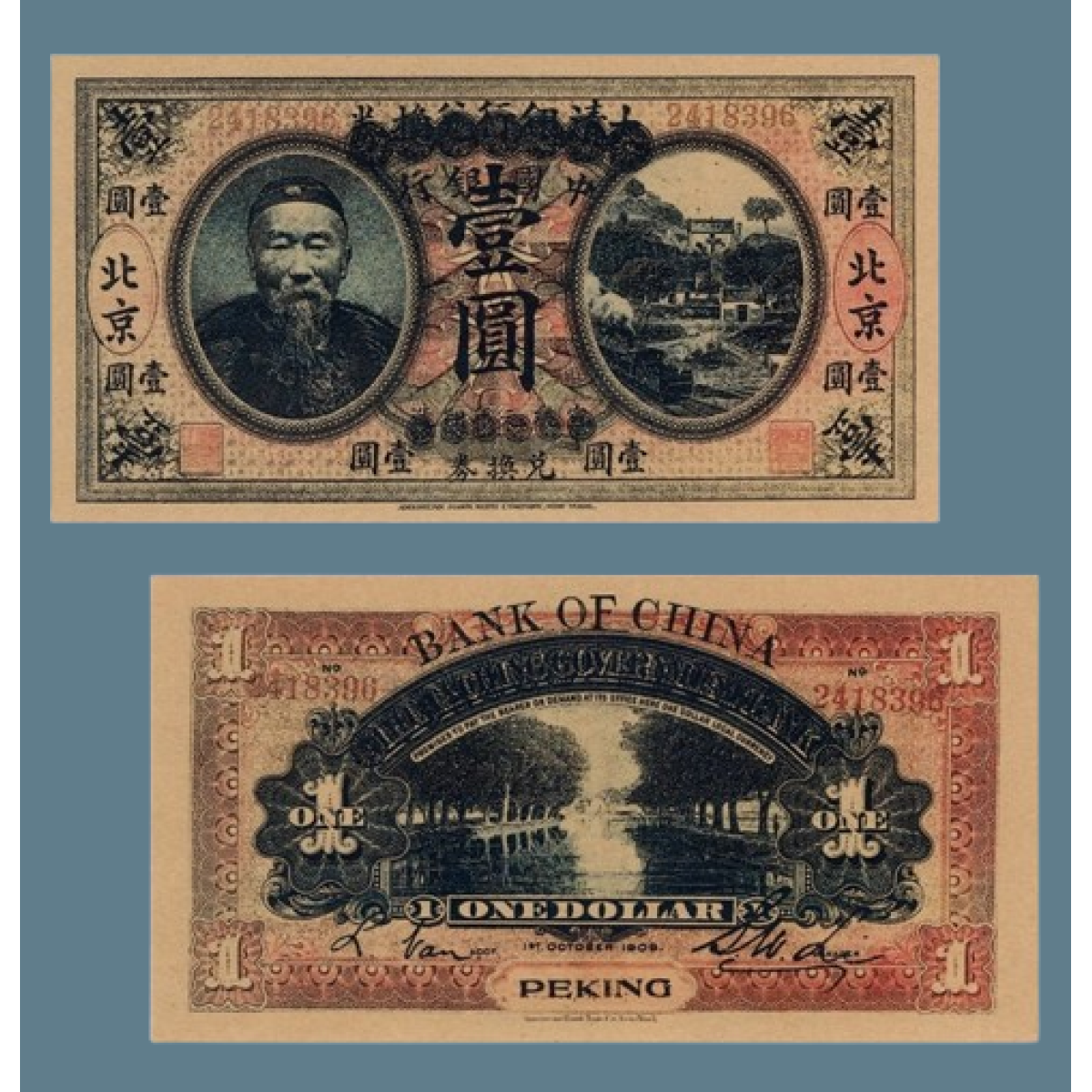 Сувенір банкнота Китай 1 юань 1909 року. династії Цин. портрет Лі Хунчжана