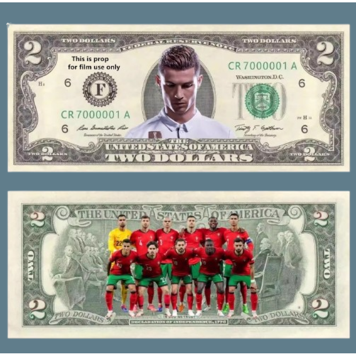 Сувенірна банкнота 2 міні США з Роналду Чіро “Сбірна Португалії“. сувенір на удачу