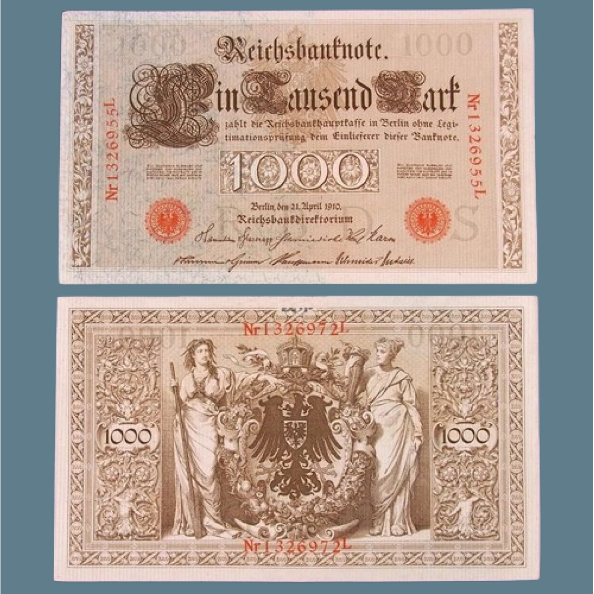 Колекційна банкнота 1000 марок 1910 р. (червоний друк) Німецька Імперія. UNC до колекції
