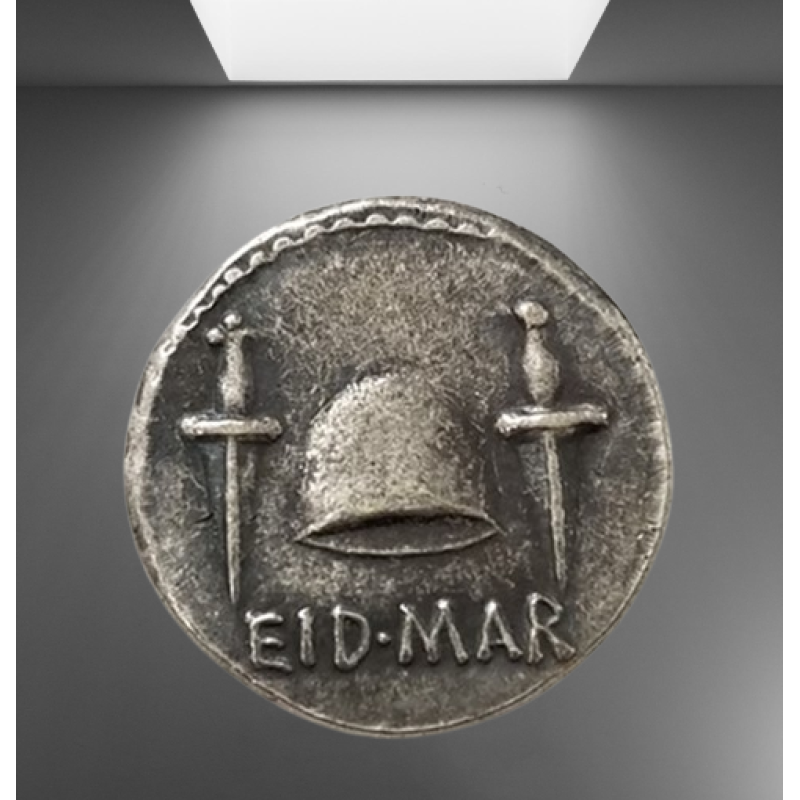 Унікальна монета «EID MAR» була відчеплена 42 року до нашої ери через два роки після вбивства Гая Юлія Цезара. Марк Юній Брут вирішив відчепити її в основаження вдалого покушіння на поета, яке було організоване членами римської Анавіта, небайдужих прагненням Цезара до повної єдиналості. На аверсі монети зображений портрет Брута, який і очолив змову. Також є написи BRVT IMP і L PLAET CEST, що означають “Війник Брут“ і “Луцій Плеторій Цестіан“.