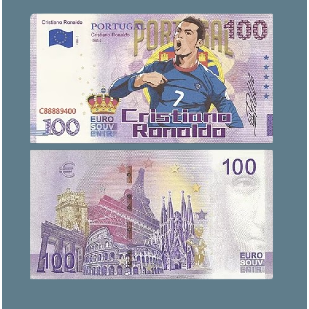 Сувенірна банкнота 100 Euro євро “Кріштіану Роналду“ (синя футболка). Китай