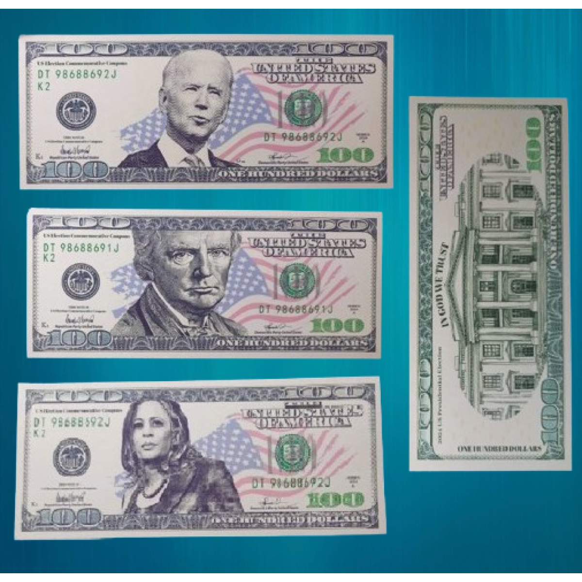 Набір Сувенірних банкнот 100 доларів США 2024 р. (Джо Байден, Дональд Трамп, Камала Гарріс)