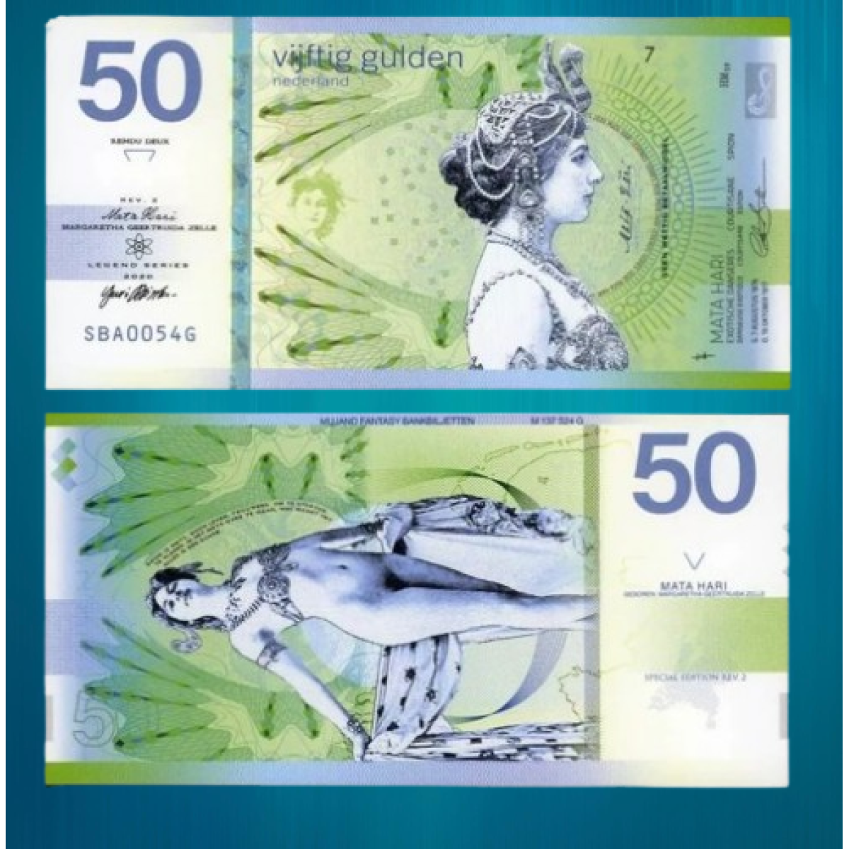 Сувенірна банкнота Нідерланди, 50 гульденів, 2020г. Мата Харі (Маргарета Гертруїда Зеллі) UNC