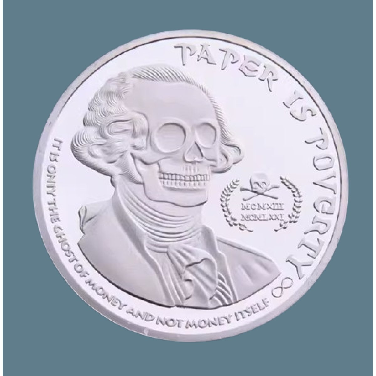 Сувенірна монета «Бумага — цестача» Череп Томаса Джефферсона/Око ілюмінатів. Поруф цв срібло
