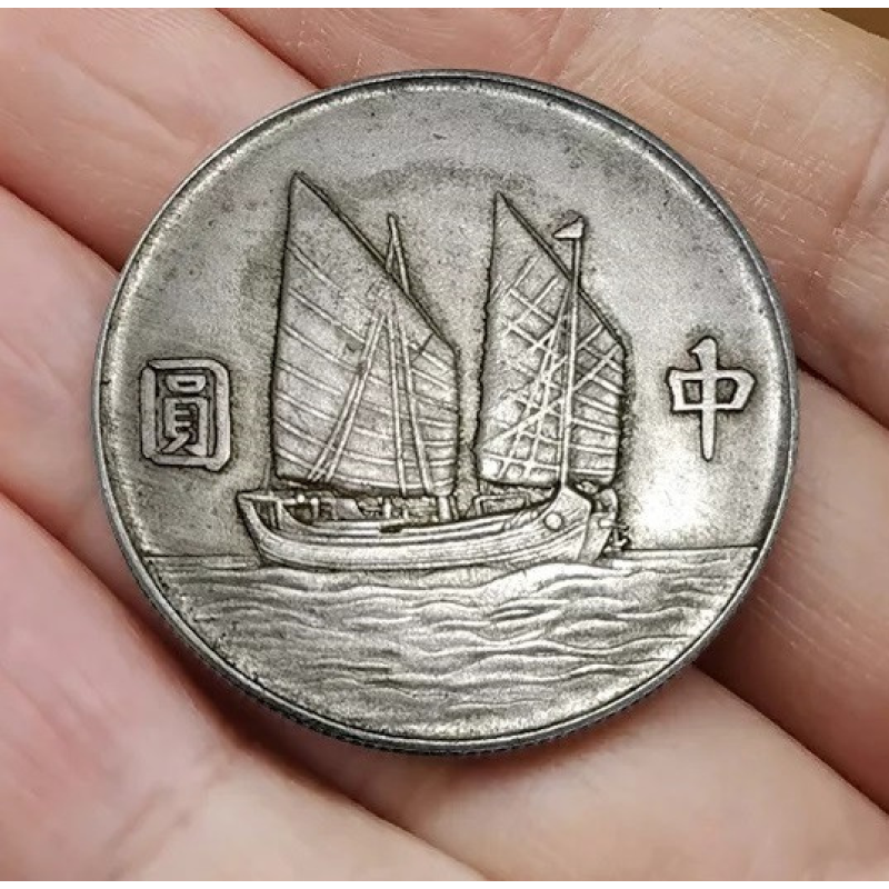 Сувенір пробна монета 50 м 06 Китай — Республіка 1 юань, 1934г. Сунь Ятсен з джонкою
