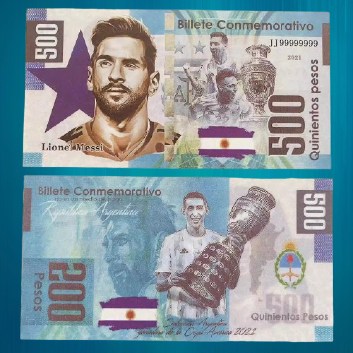 Сувенірна банкнота Португалія 500 песо Ліонель Мессі 2021. ■. UNC