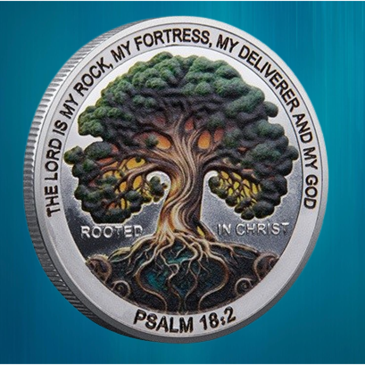Гарний дизайн: зображено величне дерево з глибокими коренями та натхненний вірш із 5381972.- Наповнений Священним Письмом: вигравіюване потужне послання: «shь — моя скеля, моя фортеця, мій порятунювач і мій Бог»