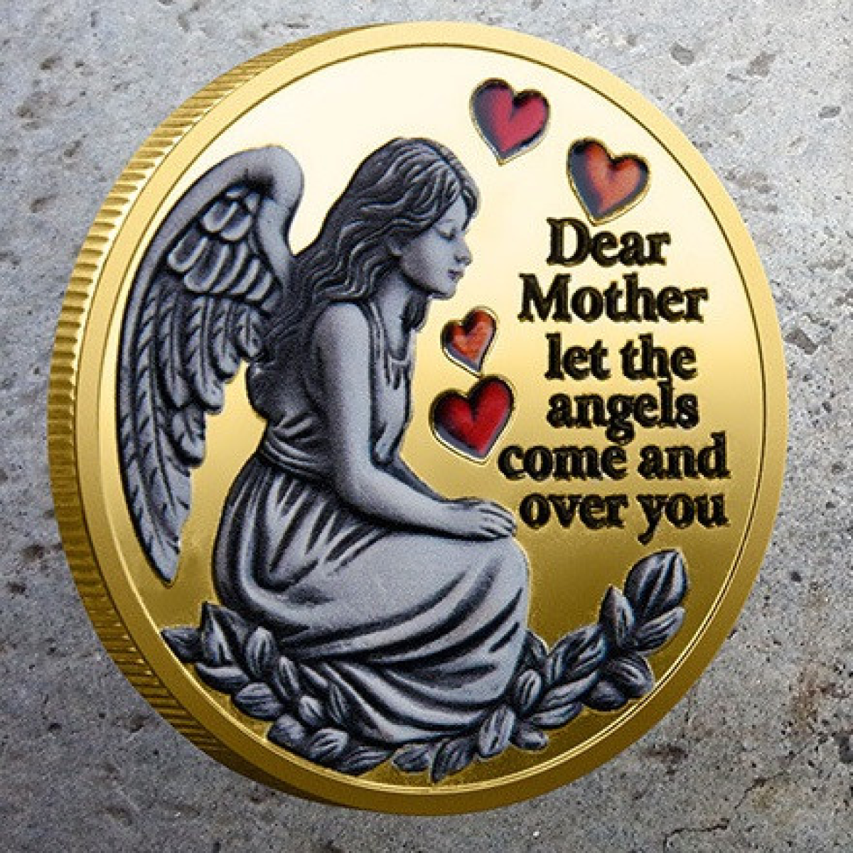 Сувенірна пам“ятна монета удачі та везіння “Ангел материнського кохання“. голд