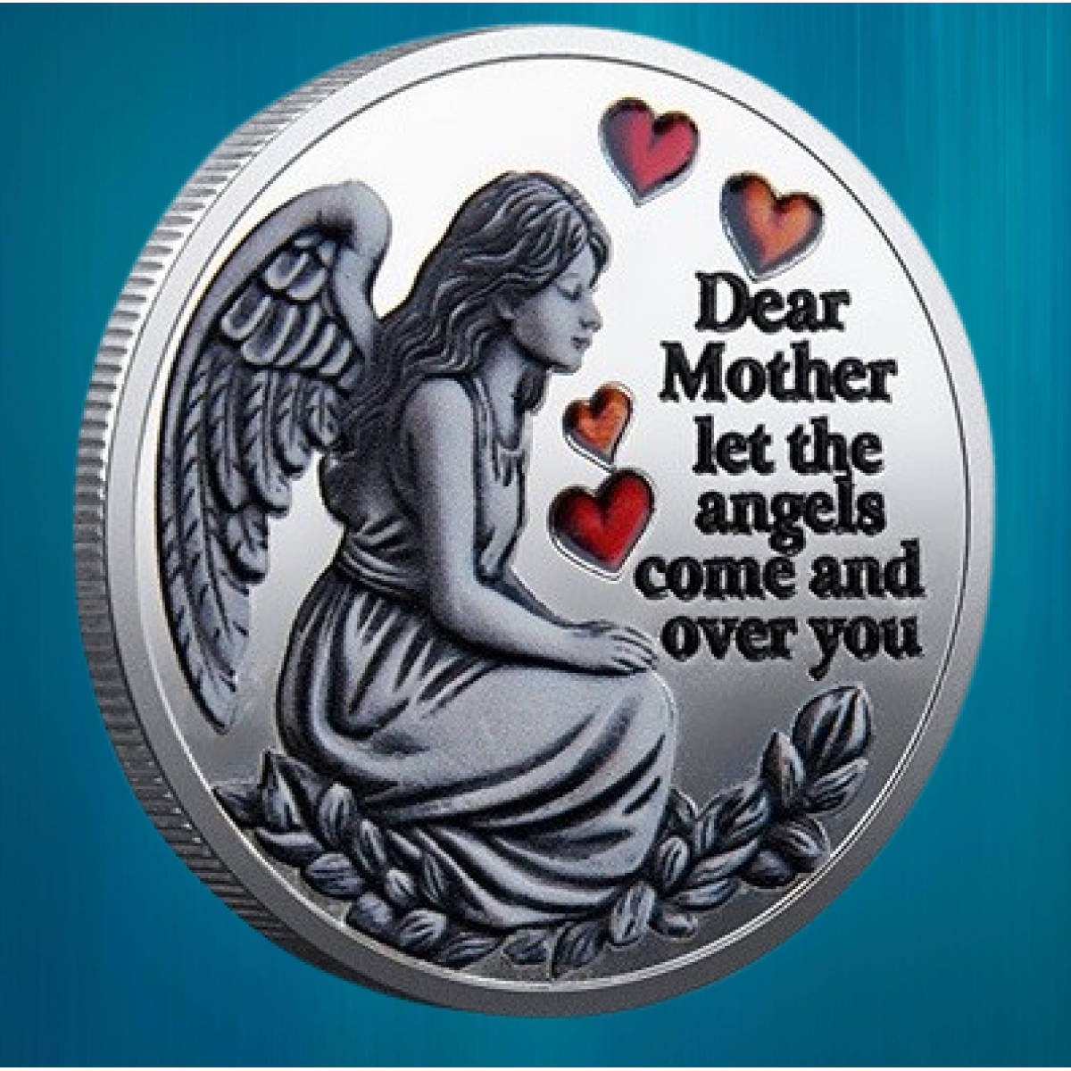 Сувенірна пам“ятна монета удачі та везіння “Ангел материнського кохання“. Сильвер