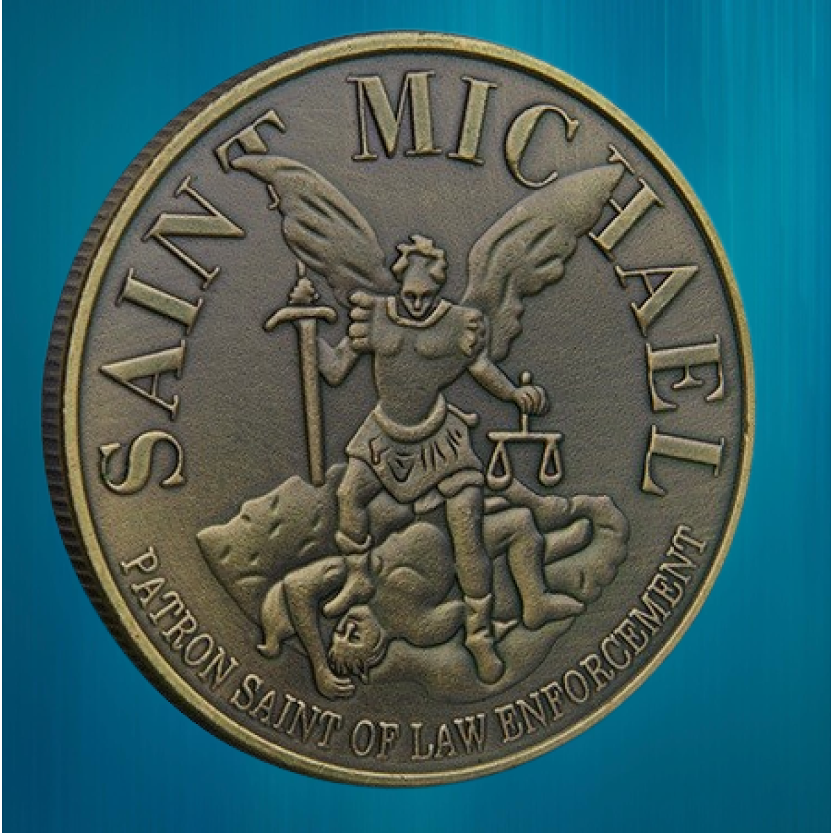 Сувенірна монета Свята Михайл і жетон поліції. бронза