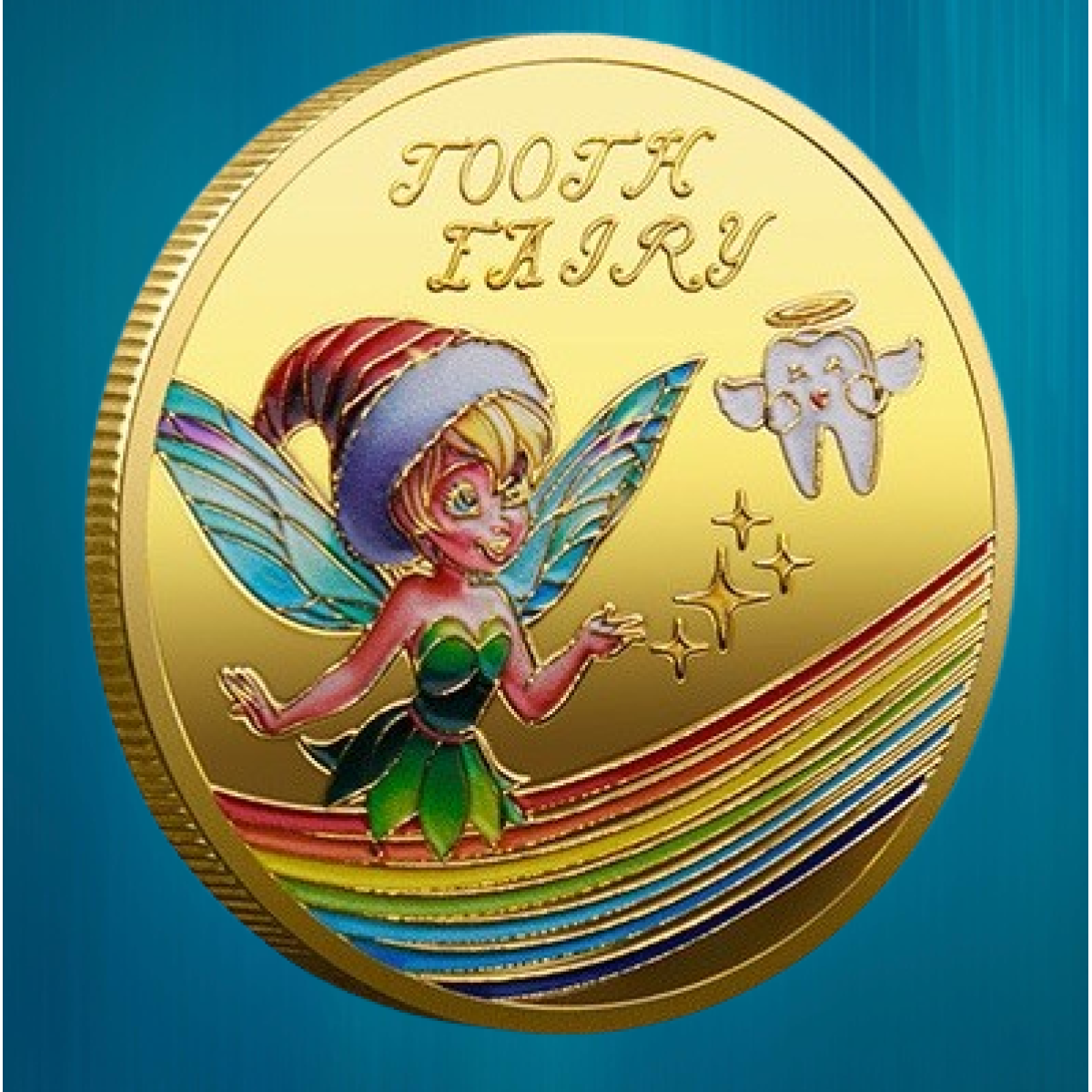 Подарункова кольорова монета «Зубна фея та зуб» голд, найкращі подарунки дитині