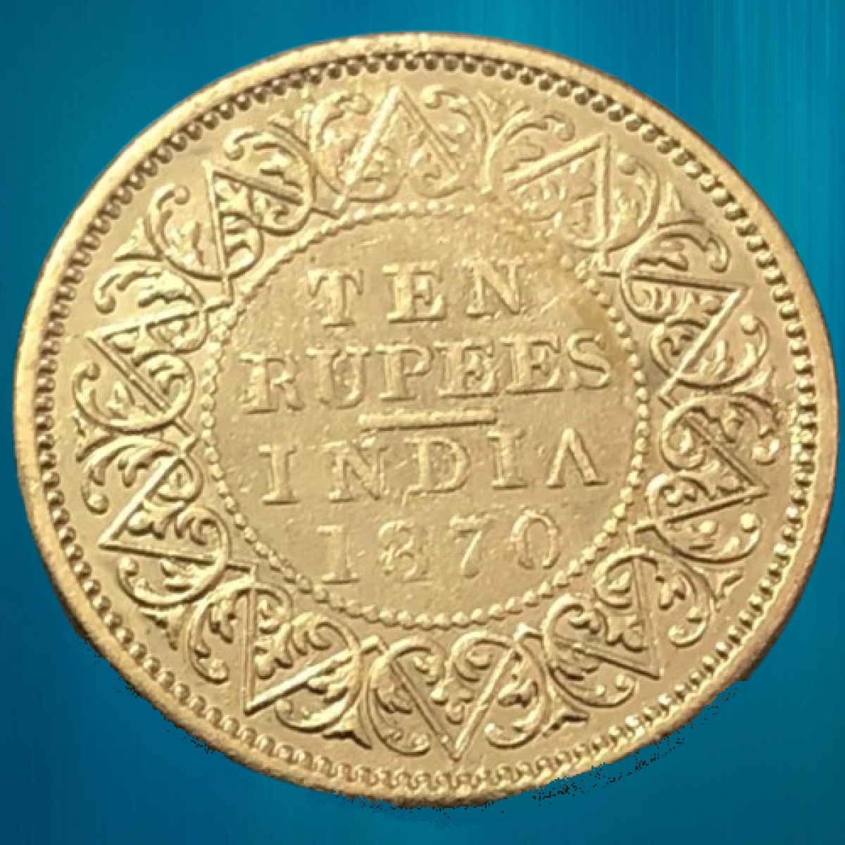 Монета перевагою 10 рупій була випущена королевою Вікторією під час її правління 1870 року н. е. монетним двором Калькутти.