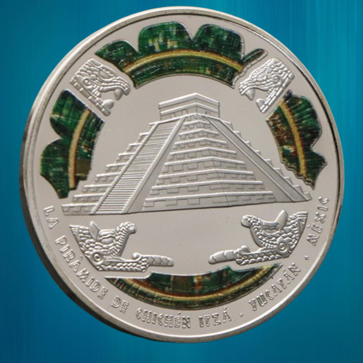 У центрі монети зображена піраміда Кукулькова в Чічен-Іці, оточена сокирами хрестових тесло, зроблених із яшми. На крайці внизу вказана назва монети каталанською мовою: «LA PIRΩMIDE DE CHICHÉN ITZ819. YUCATÁN. MÉXIC» (Піраміда в Чічен-Іці. Юкатан, Мехіко).