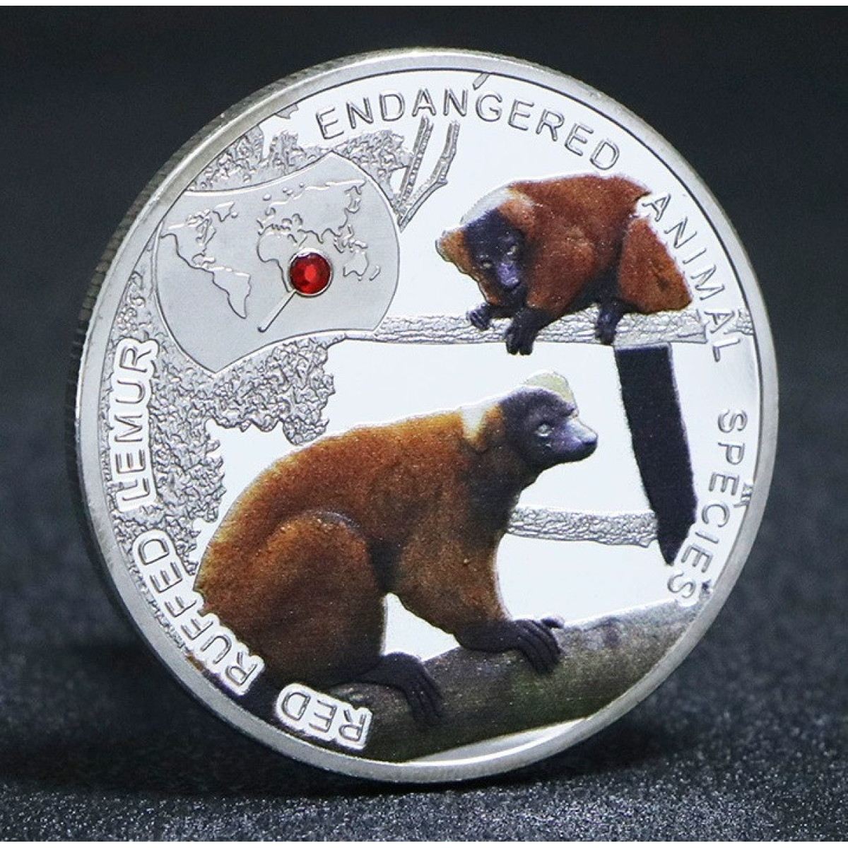 Сувенір монета “Ріжий варі лемур“ із серії Вимиральні тварини 1000 Квача 2014г, (Республіка Каміка)