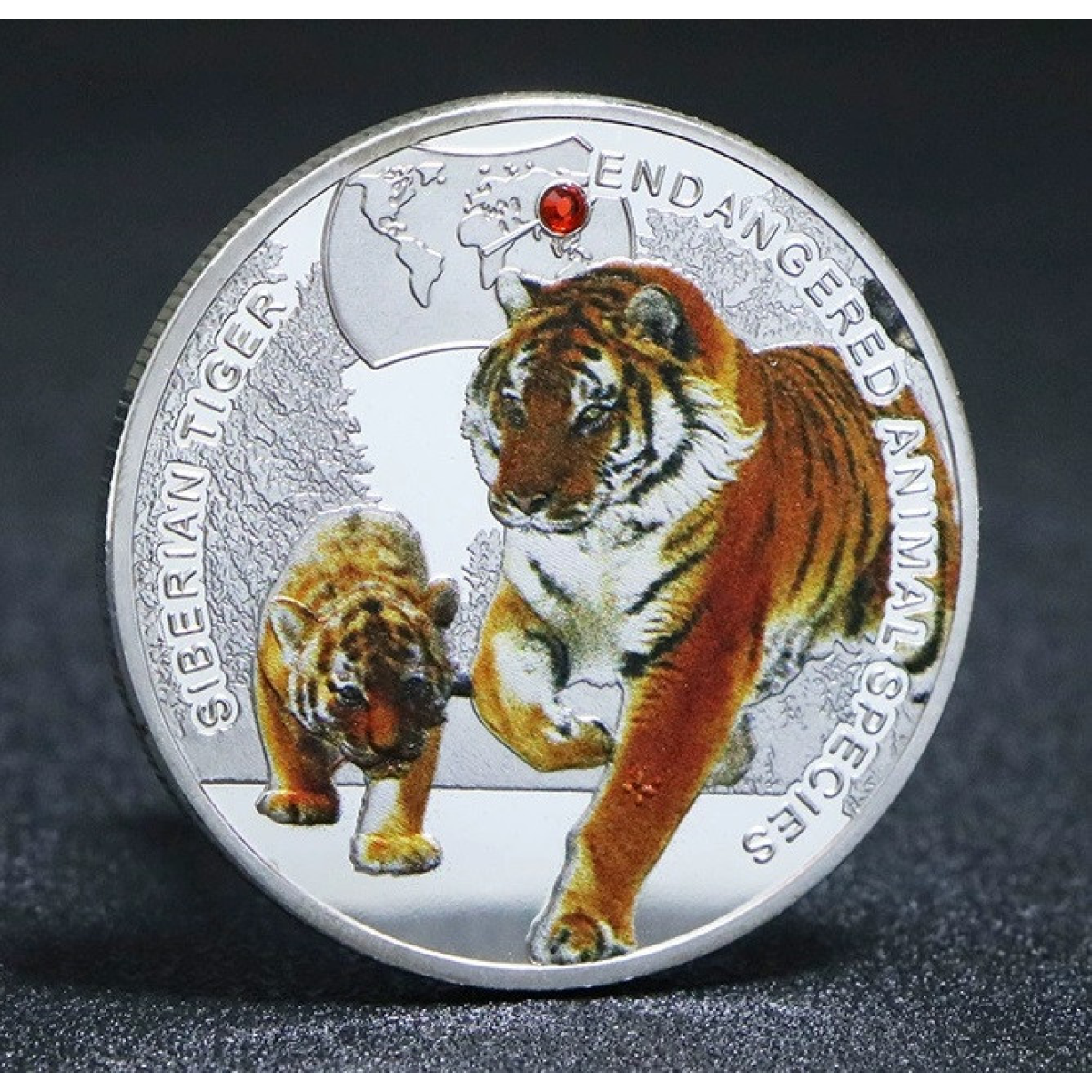 Сувенір монета “Амурський тигр“ із серії Вимиральні тварини 1000 Квача 2014г, (Республіка Замбія)
