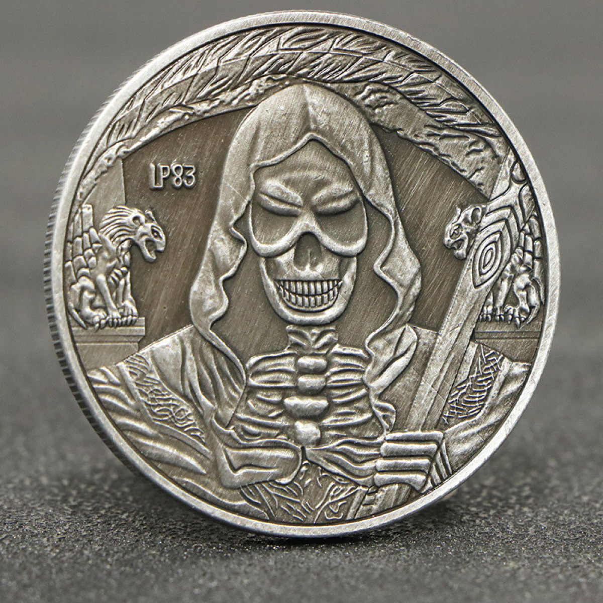 Сувенір колекційна монета з черепом “Мачний жинець“ старе срібло