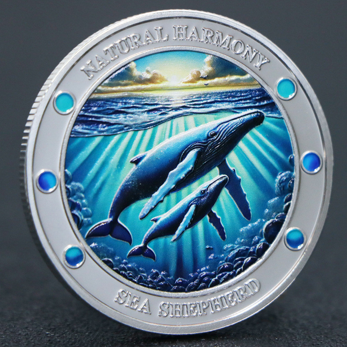 Сувенір пам“ятна монета “Синій кит“ серії вимирають різновиди тварин. Сільвер