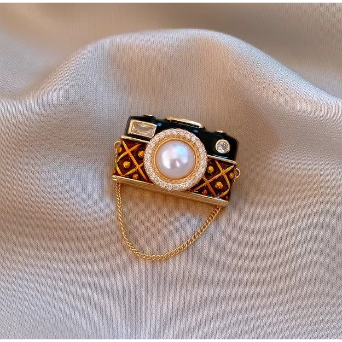 Міні брош пін, Фотоапарат із ланцюжком, біжутерія з перлиною (3х1.5см) піни, значки, піни