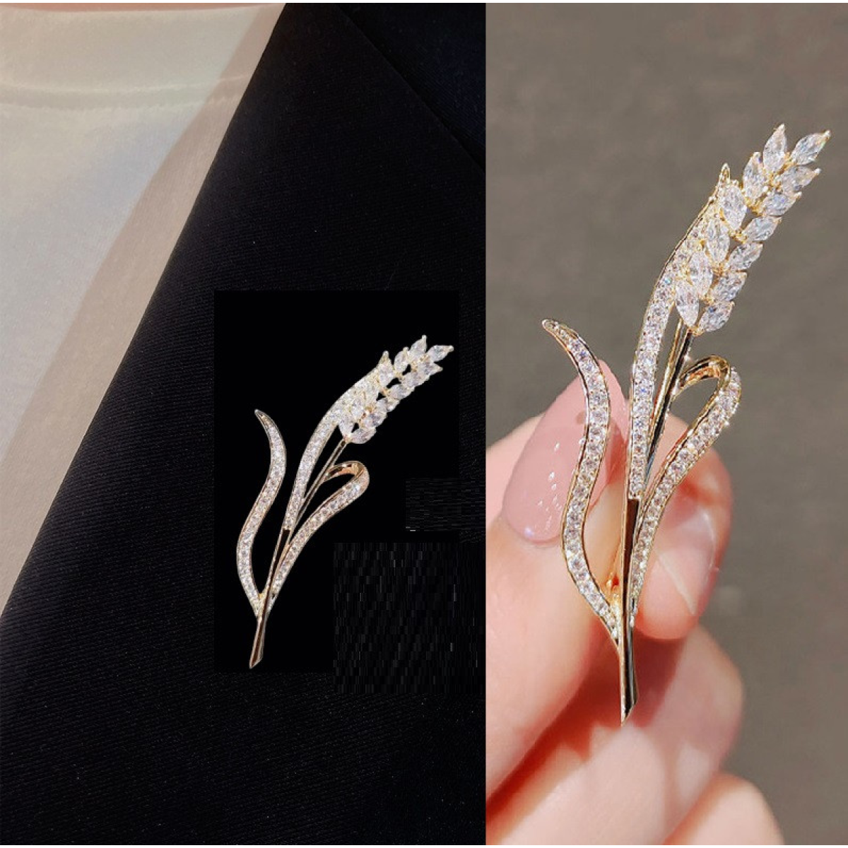 Ніжна брошка “Пшеничний колосок стрази“ 5х2 см, для жінок, для костюма, брошка на комірі