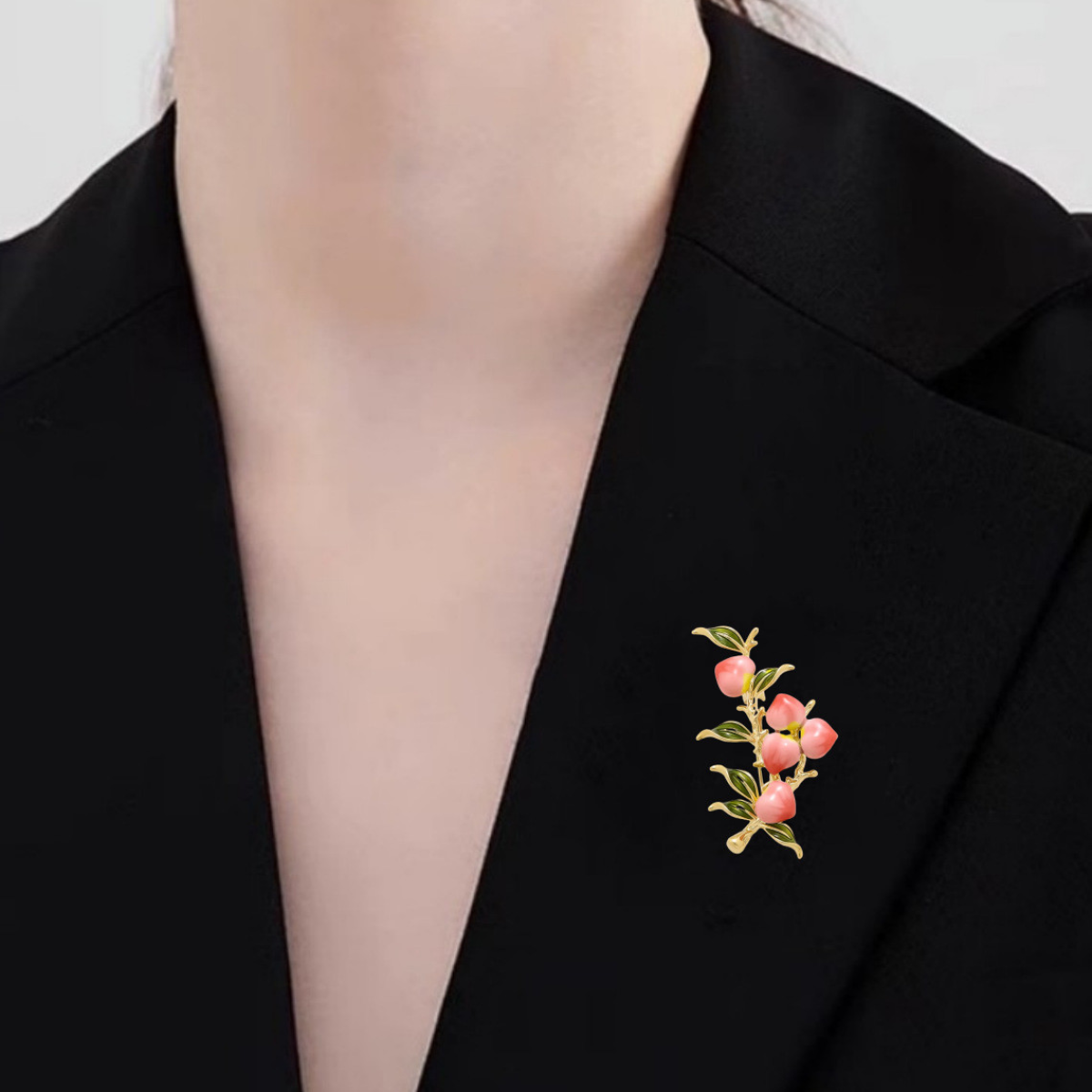Ніжна броша квітка “Вітка персиків“ 5*3 см. для жінок, для костюма, брошка шпилька на комірі