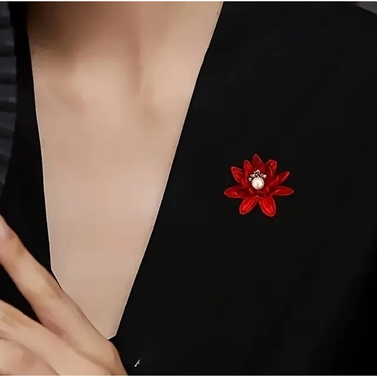 Брошка квітка “Червоний Лотос“ 4*4.5 см. для жінок, для костюма, броша шпилька